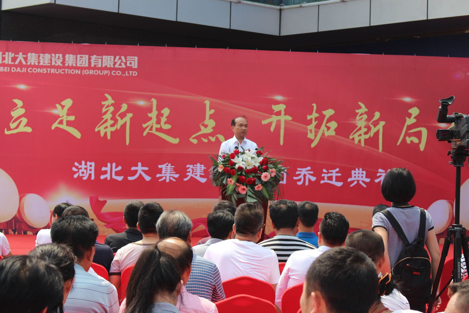 10:18分,在激情高漲的鑼鼓聲中,湖北大集建設(shè)集團(tuán)喬遷典禮正式開始。首先,由集團(tuán)董事長(zhǎng)徐濤發(fā)表講話,董事長(zhǎng)再一次向蒞臨現(xiàn)場(chǎng)的各位政府領(lǐng)導(dǎo)、行業(yè)同仁以及來賓朋友表示歡迎和感謝,然后重點(diǎn)總結(jié)了自2003年改制以來集團(tuán)的發(fā)展、壯大、收獲和成就,并表示集團(tuán)將以此次喬遷為契機(jī),繼續(xù)保持開拓進(jìn)取的積極狀態(tài)和務(wù)實(shí)求真的工作作風(fēng),在各級(jí)政府領(lǐng)導(dǎo)的支持下,各位同仁朋友的關(guān)心幫助下,努力創(chuàng)造更加輝煌的明天!