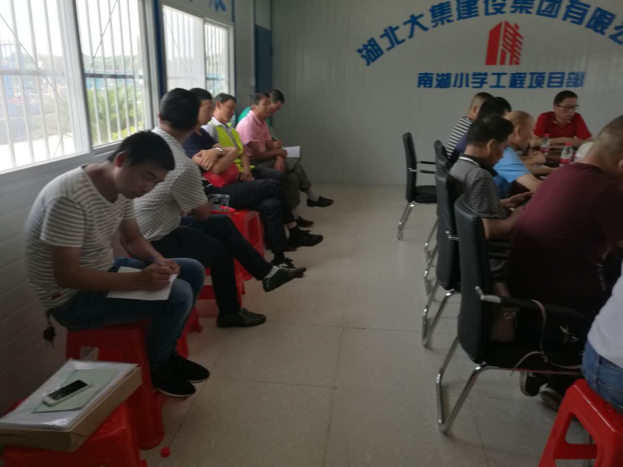 會(huì)議開始, 由南湖小學(xué)項(xiàng)目施工員介紹了該項(xiàng)目的主要情況及進(jìn)度,并表達(dá)了南湖小學(xué)項(xiàng)目創(chuàng)杯爭優(yōu)的決心,確保楚天杯,爭創(chuàng)魯班獎(jiǎng),并對施工工藝細(xì)節(jié)和各個(gè)操作班組制定了具體規(guī)范和標(biāo)準(zhǔn)。