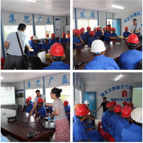 8月30日,市城建委、市人事局、市建筑工程質(zhì)量監(jiān)督站、蔡甸區(qū)監(jiān)管站一行領(lǐng)導(dǎo)蒞臨集團(tuán)南湖小學(xué)項(xiàng)目開(kāi)展送教活動(dòng),現(xiàn)場(chǎng)向工人發(fā)放保溫杯,毛巾、球鞋、收音機(jī)等生活用品和文娛用品,并通過(guò)有獎(jiǎng)問(wèn)答的形式向現(xiàn)場(chǎng)務(wù)工人員進(jìn)行了生動(dòng)有趣的安全教育和法律保險(xiǎn)知識(shí)普及,以增強(qiáng)農(nóng)民工的道德法制意識(shí)和安全文明施工意識(shí),更好地適應(yīng)現(xiàn)代化城市建設(shè)的需要!活動(dòng)現(xiàn)場(chǎng),兩位老師親切和藹,工人積極踴躍,場(chǎng)面熱烈活絡(luò)!