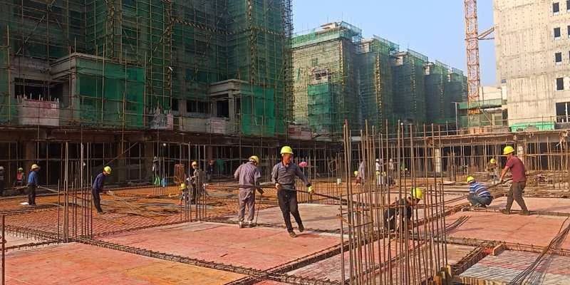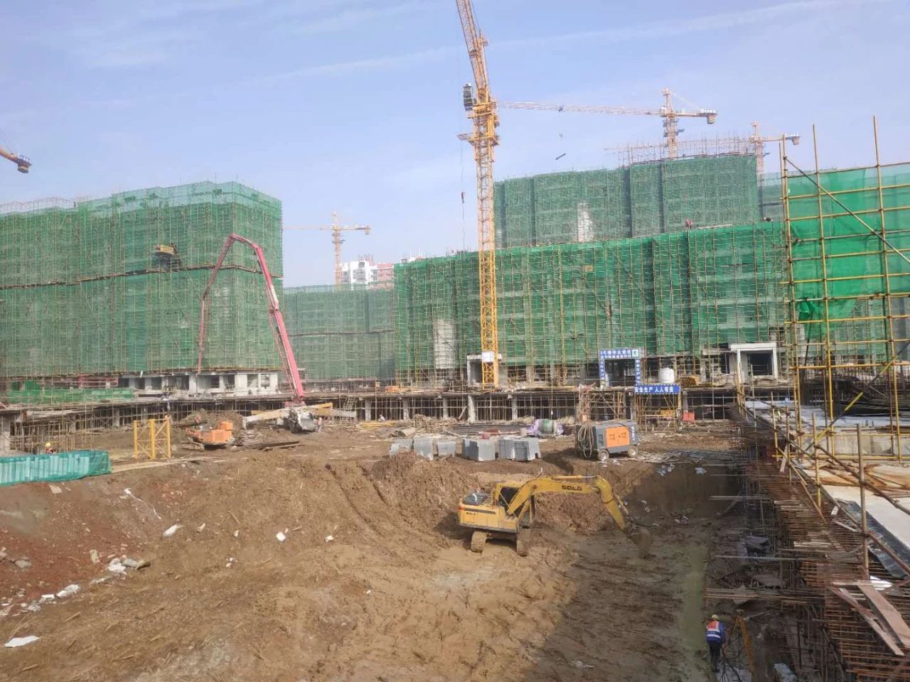 半個(gè)月的陰雨連綿之后,突然放晴的天氣讓各工地顯得格外忙碌,一大早,各施工現(xiàn)場已是人員繁忙,機(jī)器轟隆,一派井然有序、熱火朝天之象。