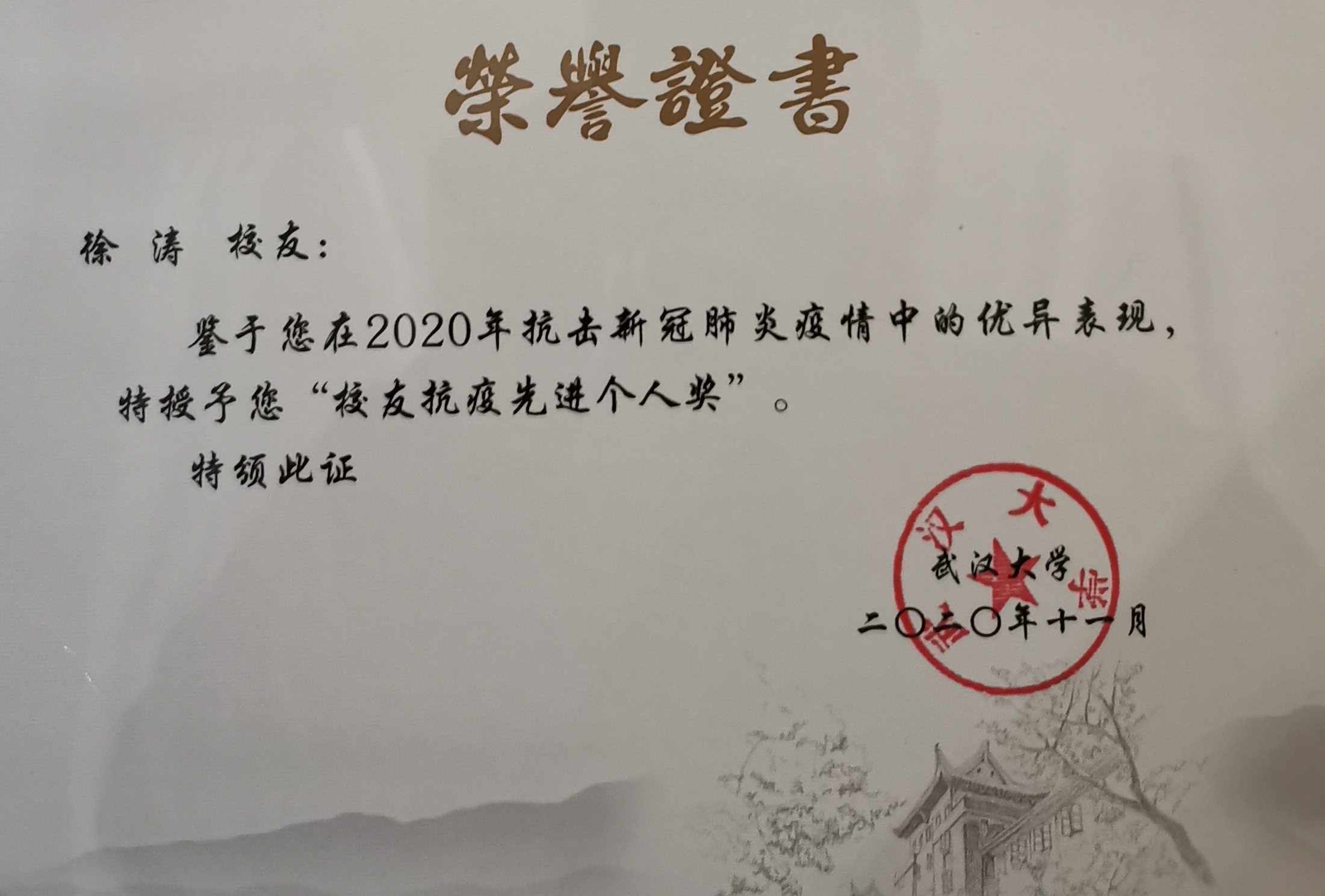 集團(tuán)董事長徐濤獲武漢大學(xué)“校友抗疫先進(jìn)個(gè)人”表彰